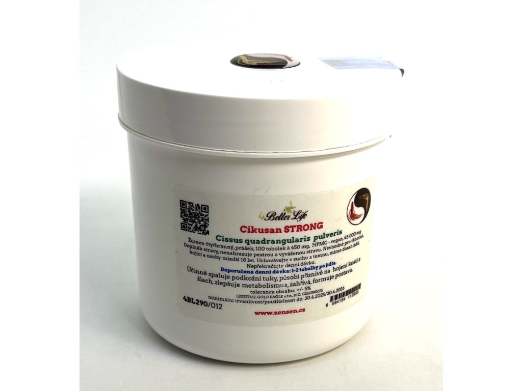 Účinný spalovač tělesných tuků, zrychlení metabolismu, na hojení kostí a šlach. Určeno též osobám, které trénují, buď rekreačně nebo intenzívně. Velké dávky byliny Cissus quadrangularis umožní těmto osobám lépe snášet zátěž tréningu, umožní jim posílit kosti a šlachy a současně formuje postavu. Balení 45000 mg / 100 HPMC (prebiotikum) tobolek á 450 mg. Upozornění: nová dóza obsahuje vysušovací sáček a potravinářskou folii na vyplnění prostoru - obé je nepoživatelné!