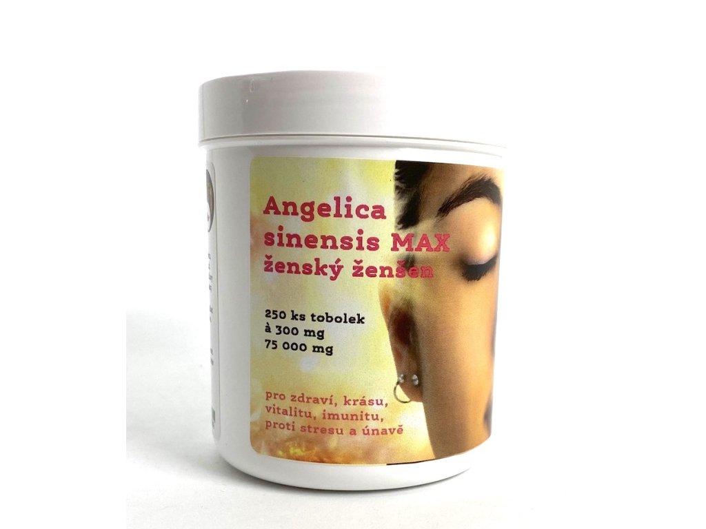 Angelica sinensis, dong quai, po chińsku 當歸, znana również jako żeński żeń-szeń, wieloletnia roślina występująca w górach Chin, Korei, a także Japonii, podobna do naszej Angelica officinalis, ale zawierająca więcej substancji czynnych. 240 zielonych (lub przezroczystych) kapsułek HPMC (wegańskich), wypełnionych łącznie 72 000 miligramów drobno zmielonego korzenia chińskiej arcydzięgla.