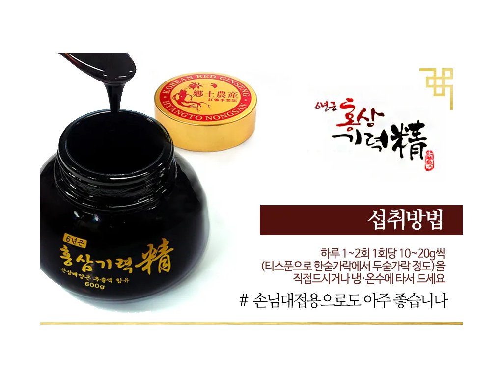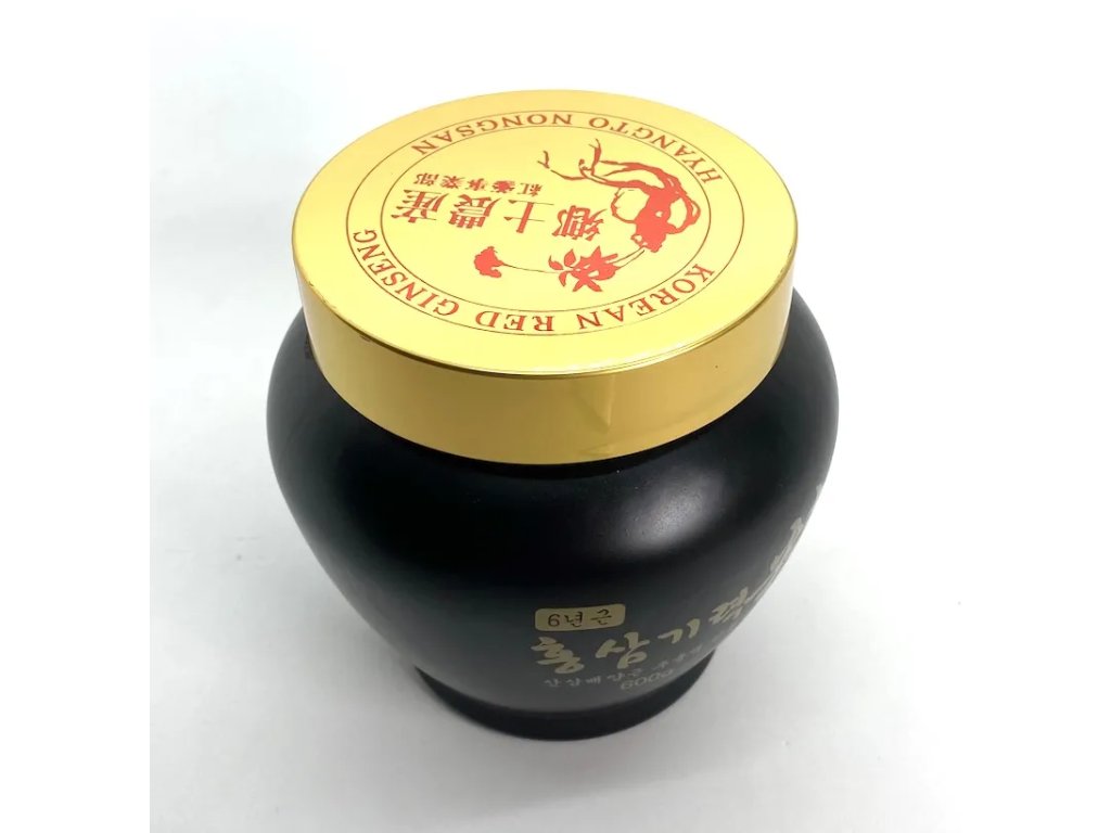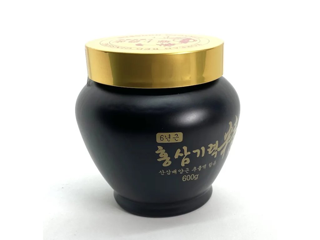 Balení extraktu korejského ženšenu - půlroční dávka pro 2, ve sklenici 600 gramů, s příměsí medu a pro dochucení extraktu směsi bylin (reishi, jujoba - Ziziphus zizyphus, lékořice, skořice, zázvoru, anděliky) na imunitu a energii. Extrakt je vyroben z cca 70% hlavního kořene a z cca 30% drobných koncových kořínků, čímž se dosáhlo širokého spektra účinných látek.