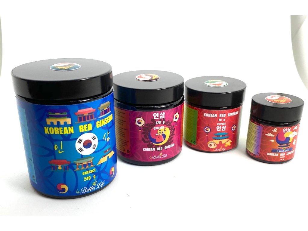 Miesięczne opakowanie naszego najsilniejszego ekstraktu z koreańskiego żeń-szenia, 6-letniego, w szklanej butelce 40 gramów ekstraktu. Ekstrakt jest wytwarzany w około 70% z głównego korzenia i w około 30% z drobnych korzeni końcowych, dzięki czemu uzyskano szerokie spektrum substancji czynnych, zawartość ginsenozydów 70 mg/g (bardzo wysoka dawka!).