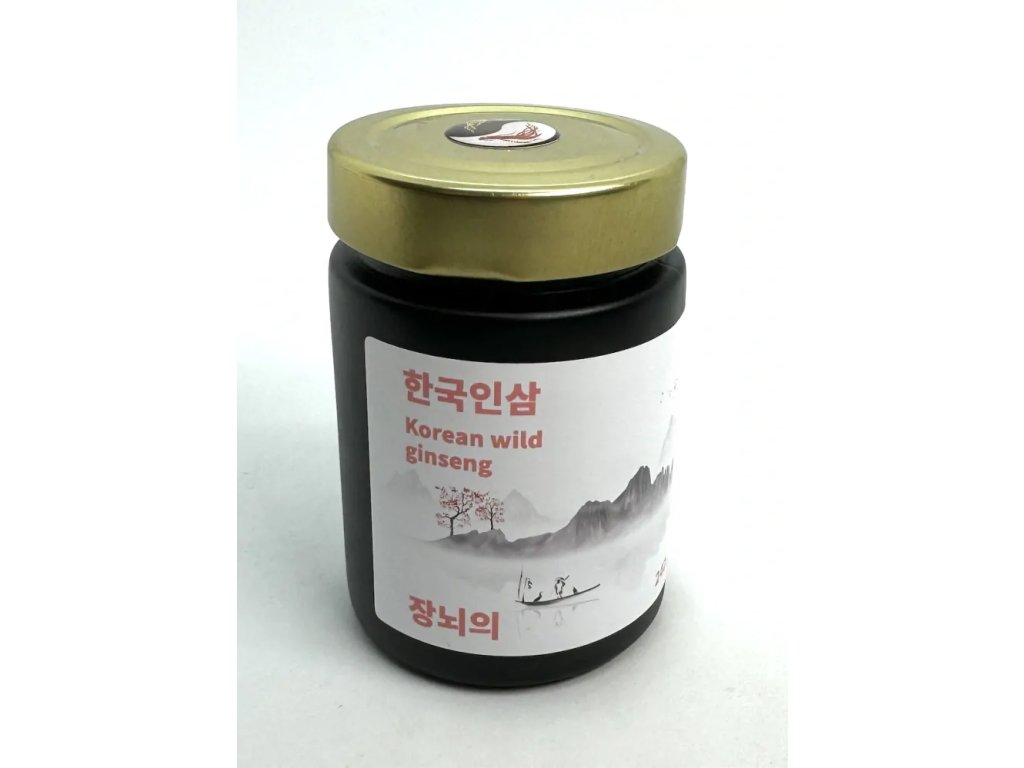 Wysokiej jakości i bardzo smaczny ekstrakt z dzikiego żeń-szenia koreańskiego (białego), 6-letniego, 93%, w ciemnym opakowaniu farmaceutycznym z miarką, 240 gramów ekstraktu. Ekstrakt jest wytwarzany w około 70% z głównego korzenia i w około 30% z drobnych korzeni końcowych, dzięki czemu uzyskano szerokie spektrum substancji czynnych. Charakterystyczny jasny kolor ekstraktu.