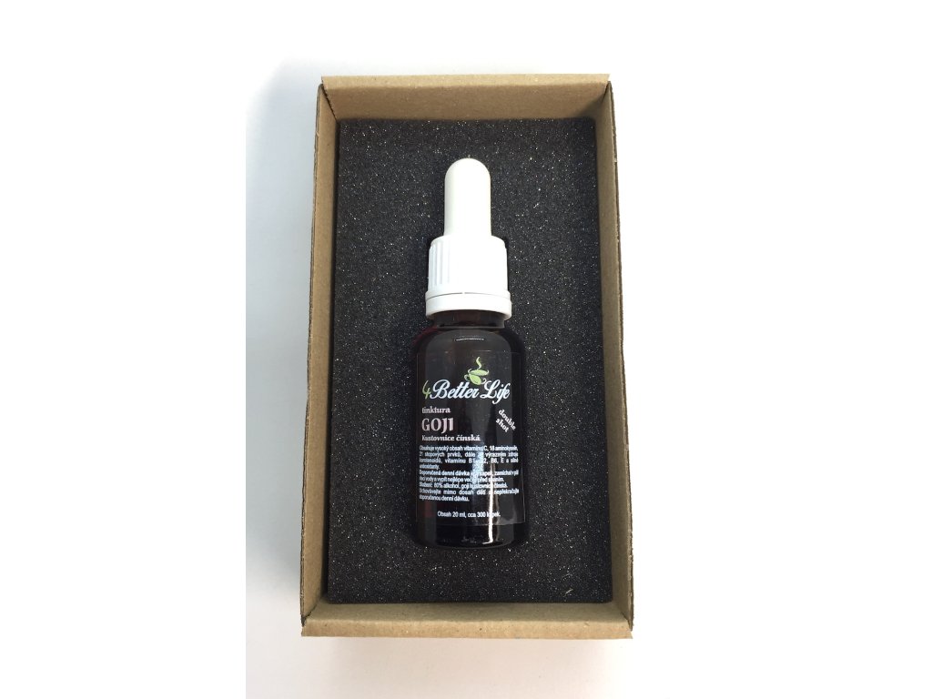 Krople z goji – chińskiej jagody dzikiej są łatwe w użyciu i dawkowaniu oraz charakteryzują się wysoką przyswajalnością. Bardzo wskazane jest stosowanie kropli GOJI wraz z kroplami z żeń-szenia. Opakowanie zawiera 20 gramów nalewki z jagód goji macerowanych przez 1 miesiąc w 80% czystym alkoholu. Buteleczka wyposażona jest w pipetę do dokładnego dozowania.