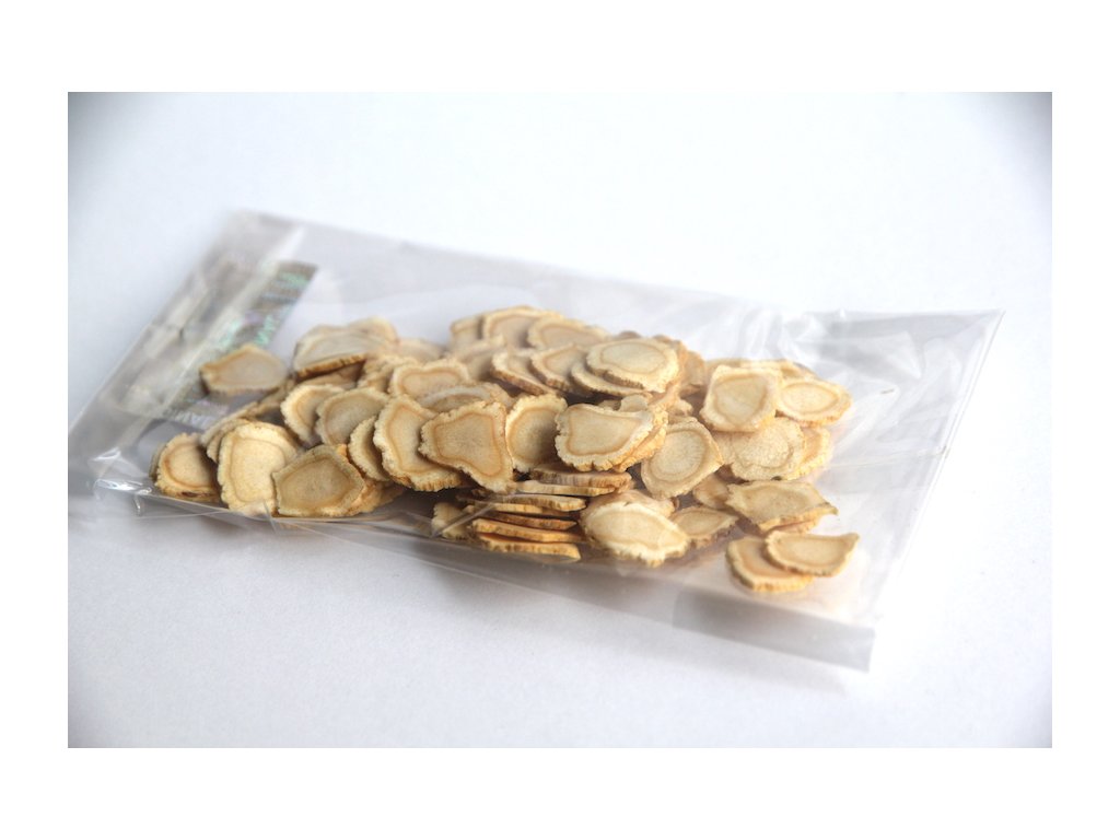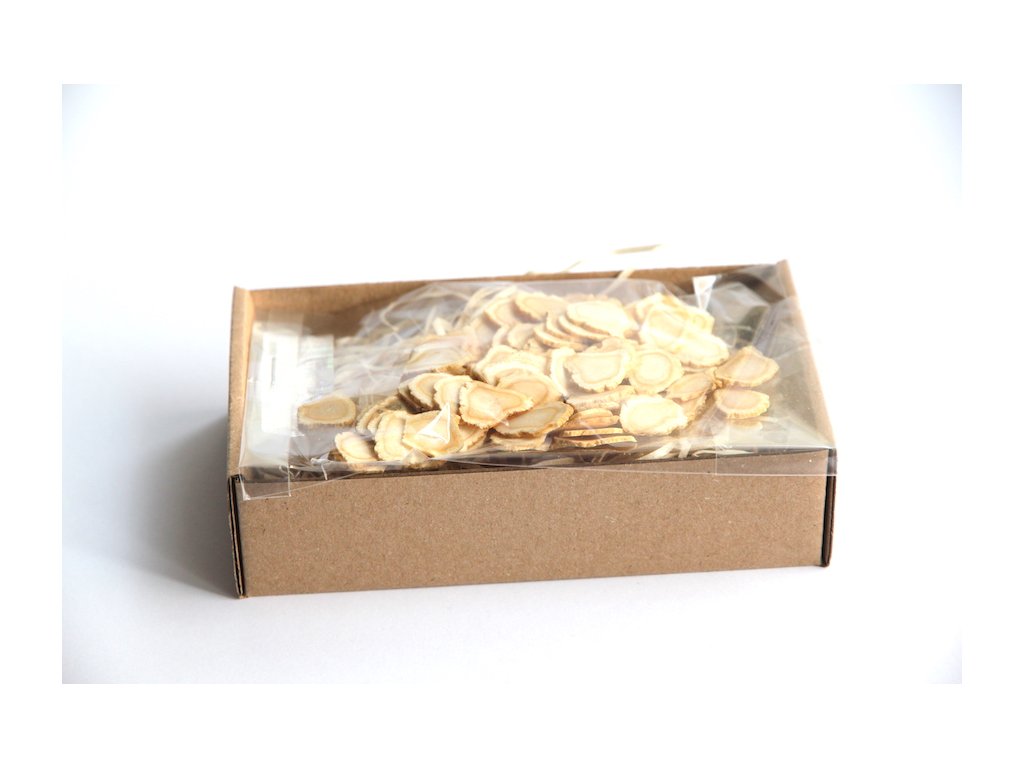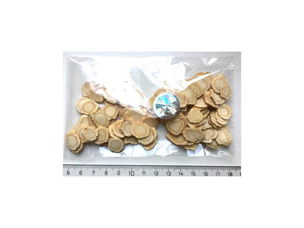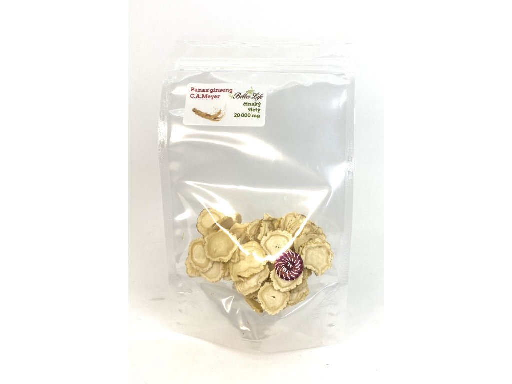 Prawdziwy chiński żeń-szeń – korzeń pokrojony w plasterki. Opakowanie zawiera 20 gramów (wersja /46-2 zawiera 365 gramów) 100% pokrojonego korzenia żeń-szenia chińskiego, zapakowanego w niedrogim pudełku składanym. Dziewięcioletni żeń-szeń przez dziewięć długich lat gromadził substancje czynne. Starsze korzenie żeń-szenia są rzadko dostępne. Całkowita zawartość substancji czynnej (korzeń żeń-szenia) wynosi 20 g w opakowaniu. Jeśli jest pakowany próżniowo, można go przechowywać o 2 lata dłużej niż podano na opakowaniu.