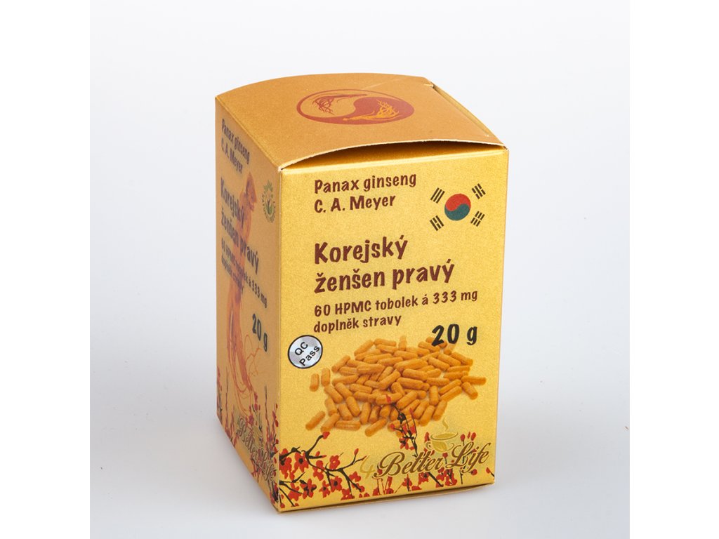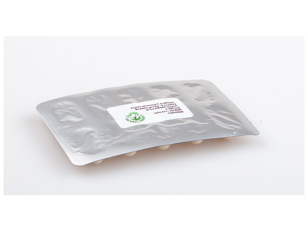 Panax Gingseng – żeń-szeń lekarski – prawdziwy koreański żeń-szeń, mielony żeń-szeń - HPMC (wegańskie) kapsułki 60 sztuk po 333 miligramów, 6-letni, kapsułki rozmiar „0” *, 6 blistrów po 10 kapsułek, w opakowaniu ulotka informacyjna.