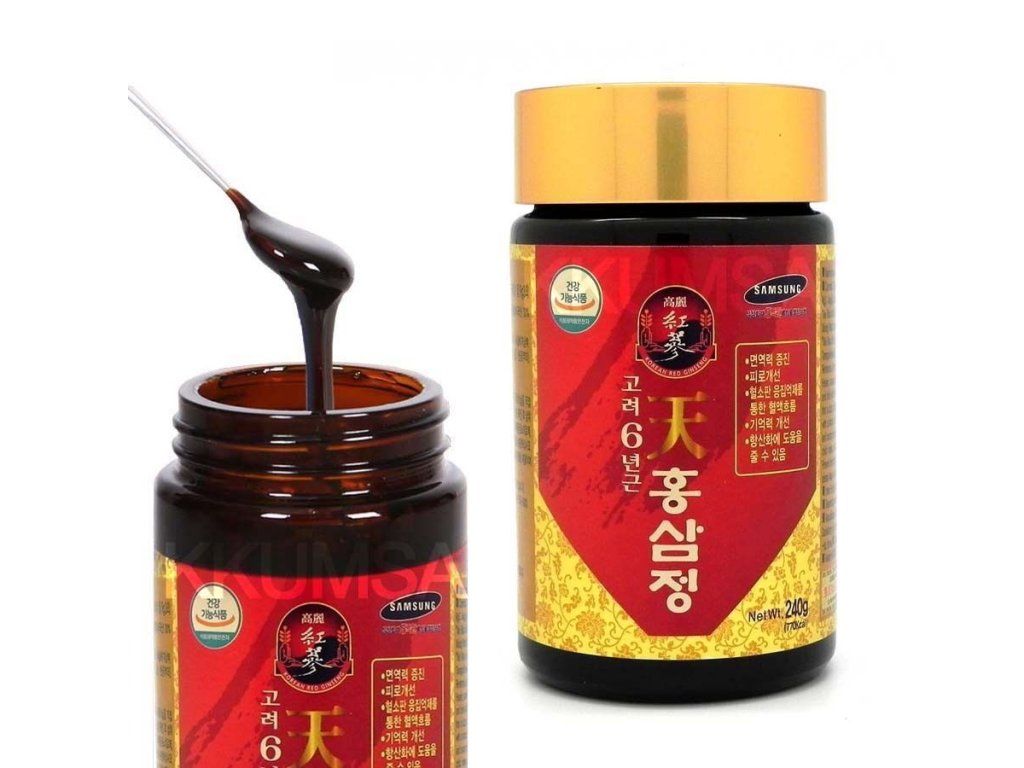 Prezentowe opakowanie wysokiej jakości ekstraktu z koreańskiego żeń-szenia, 6-letniego, w słoiczku z łyżeczką dozującą, 240 gramów, pakowane w słoiczku. Ekstrakt jest wytwarzany w około 70% z głównego korzenia i w około 30% z drobnych korzeni końcowych, dzięki czemu uzyskano szerokie spektrum substancji czynnych. Z wyselekcjonowanych 6-letnich czerwonych korzeni żeń-szenia. Zawartość ginsenozydów 4 mg/1 g.