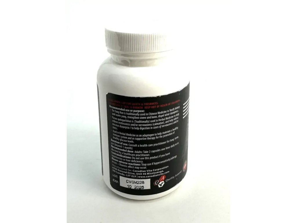 60 želatinových kapslí vysoce účinného amerického ženšenu s Epimedium brevicornum, Tribulus terrestris and Eurycoma longifolia, celkem 32 400 mg účinné látky, měsíční dávka.