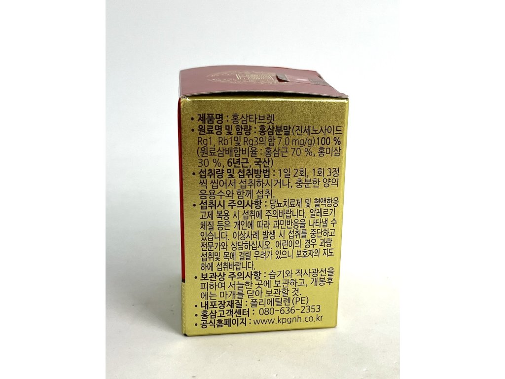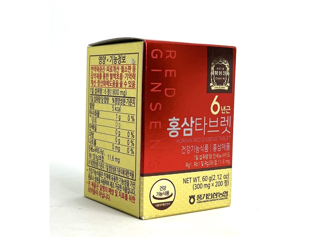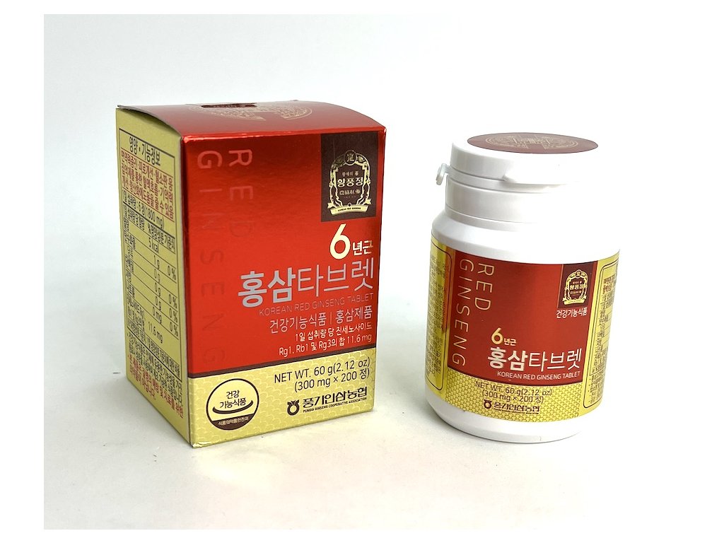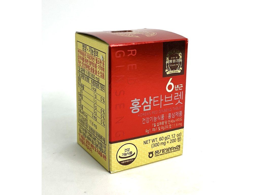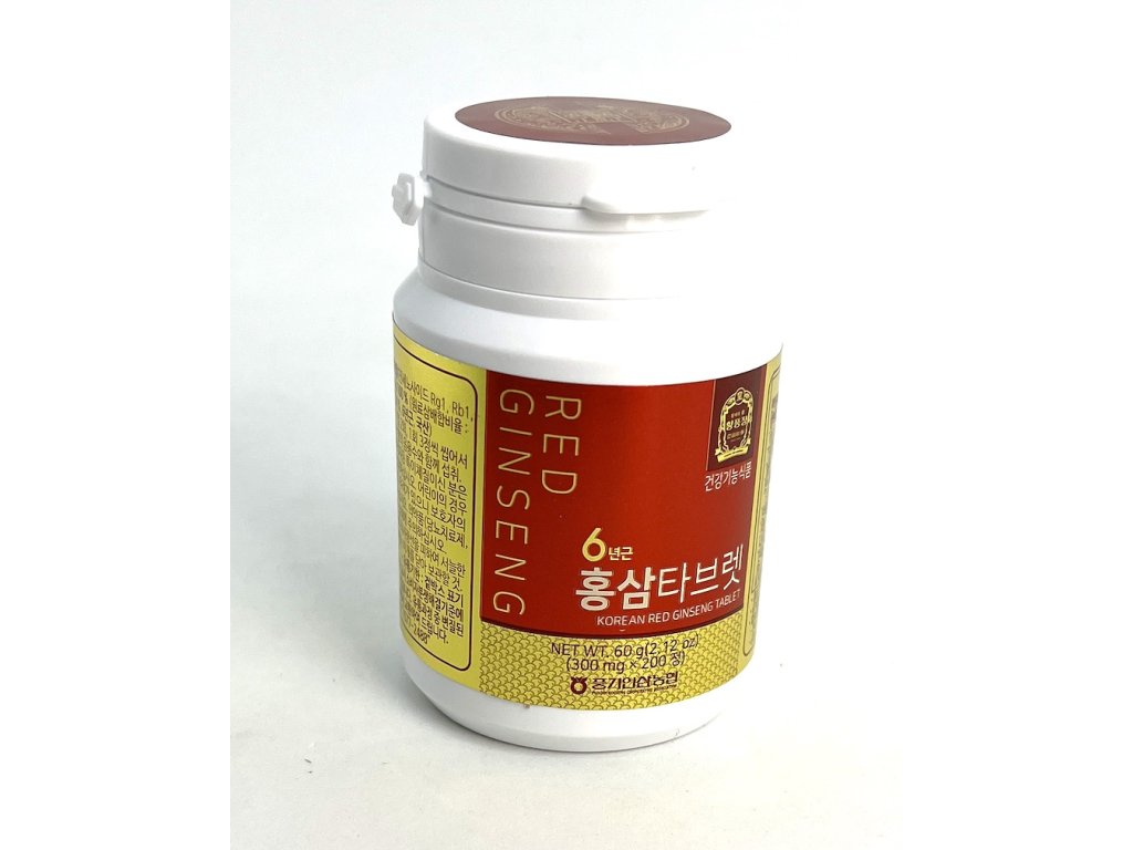 V plastové dóze baleno 200 mg tablet z pravého korejského 6letého červeného ženšenu. Každá tobolka obsahuje 300 miligramů čistého ženšenu, celkem je v balení 60 g ženšenu. Celkový obsah účinné látky (ženšenu) v balení je 60 g.