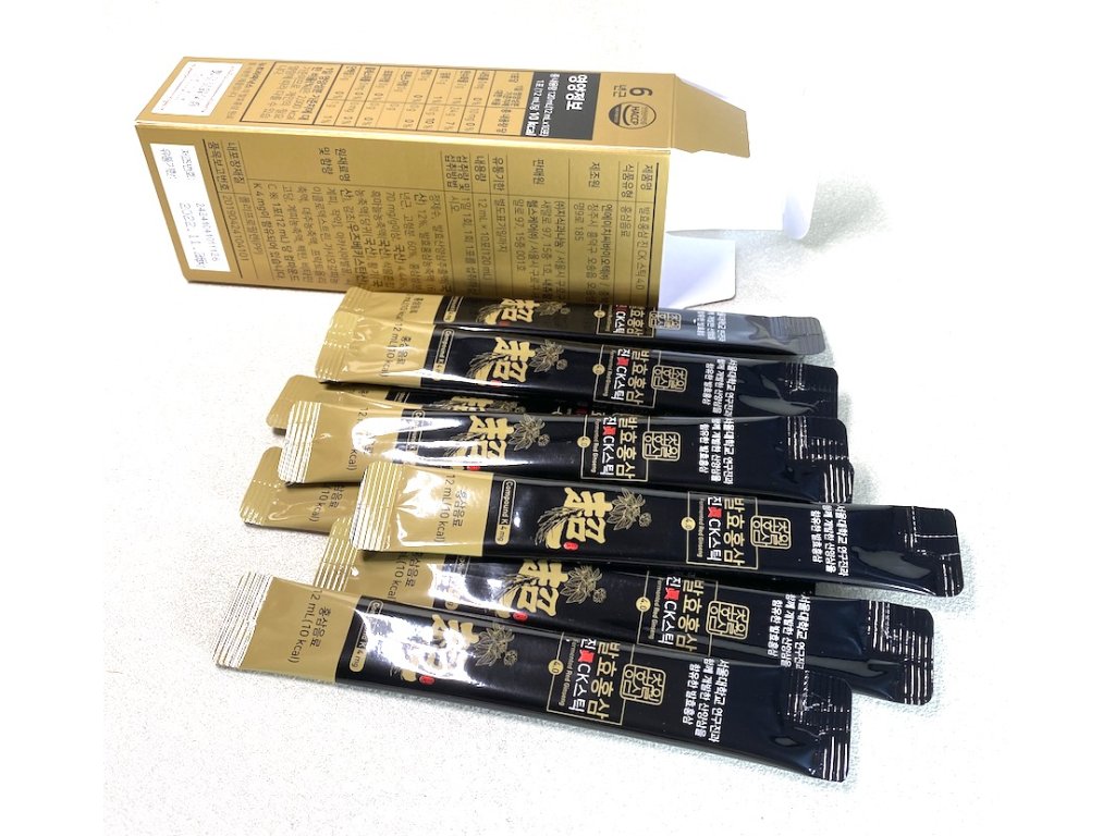 Obsahuje 10 sáčků, v každém 12 ml tekutého extraktu 6letého červeného ženšene, na 1 sáček 12 ml připadá 1 g cukru, méně než 1 mg soli, 0 g uhlohydrát, 10 kcal, pro zlepšení chuti příměs čínské datle, skořice, zázvoru, lékořice, pivoňky, pektinu, astragalus, černého česneku, akátového medu, obsah ginsenosidů 70 mg/ g.